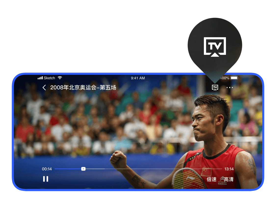 点击手机播放器右上角的投屏按钮,即可进行投屏